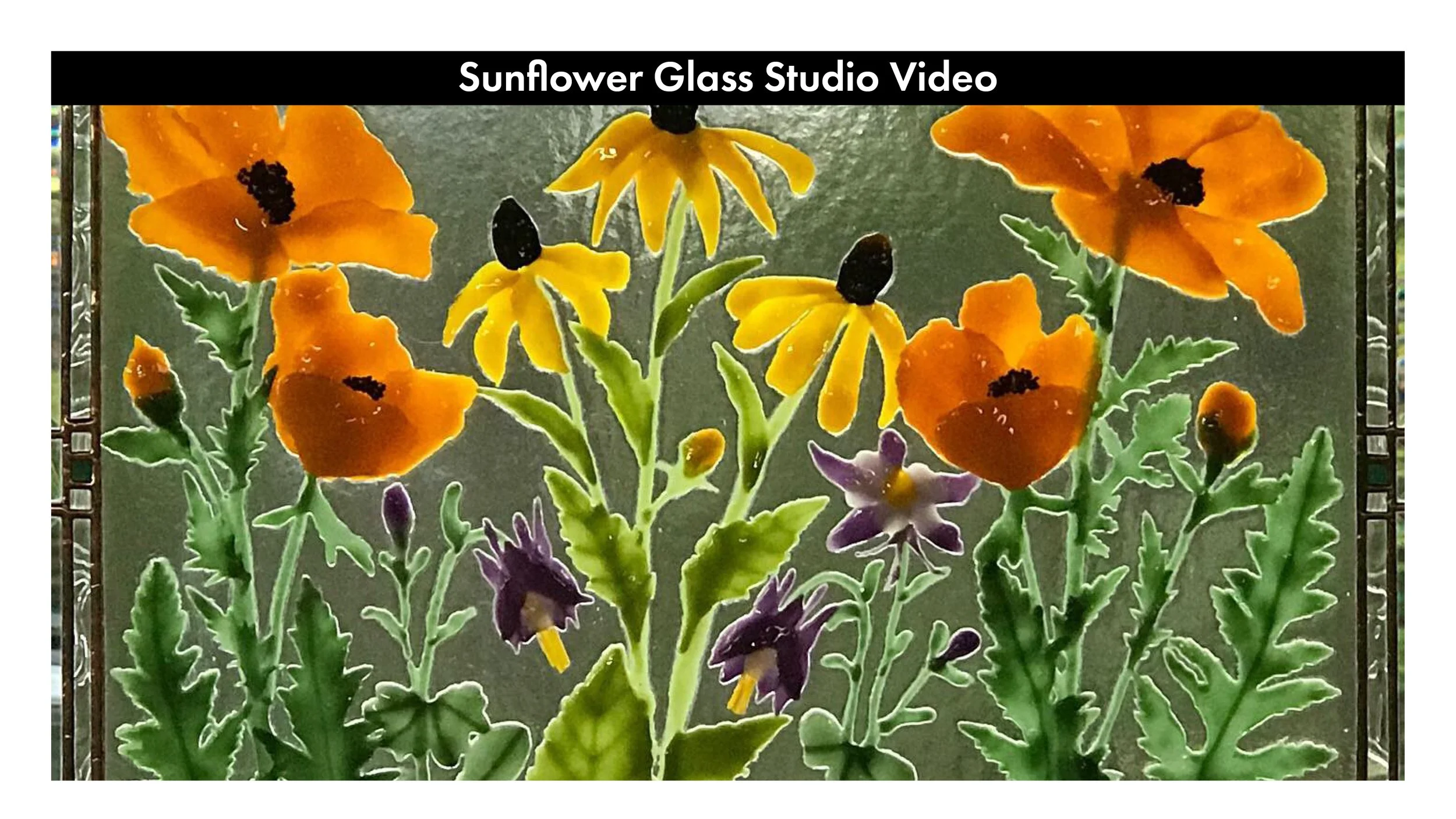 Karen and Geoff Caldwell continue to pursue their passion of mixing many forms of glass into their pieces; fused, painted, beveled and stained glass. Karen’s fused botanical work explores many native flowers while Geoff continues to add new painting techniques to his hand-painted work. Many of these glass techniques are transformed into small windows and table top collectibles as well as custom windows. Bevels are always found among each item that Sunflower produces since it was the first love of the art form.